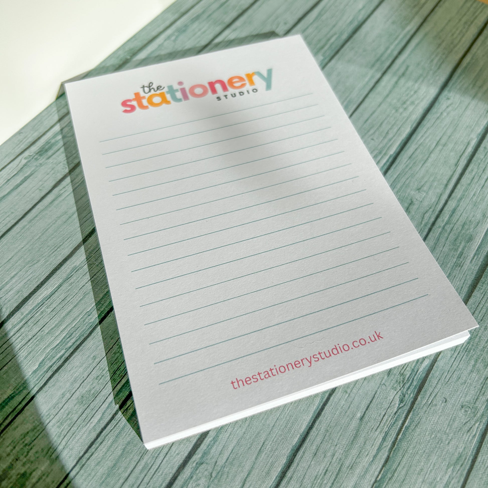 Each notepad is personalised with your own logo or branding, making it the perfect addition to your desk, customer orders, or office stationery.