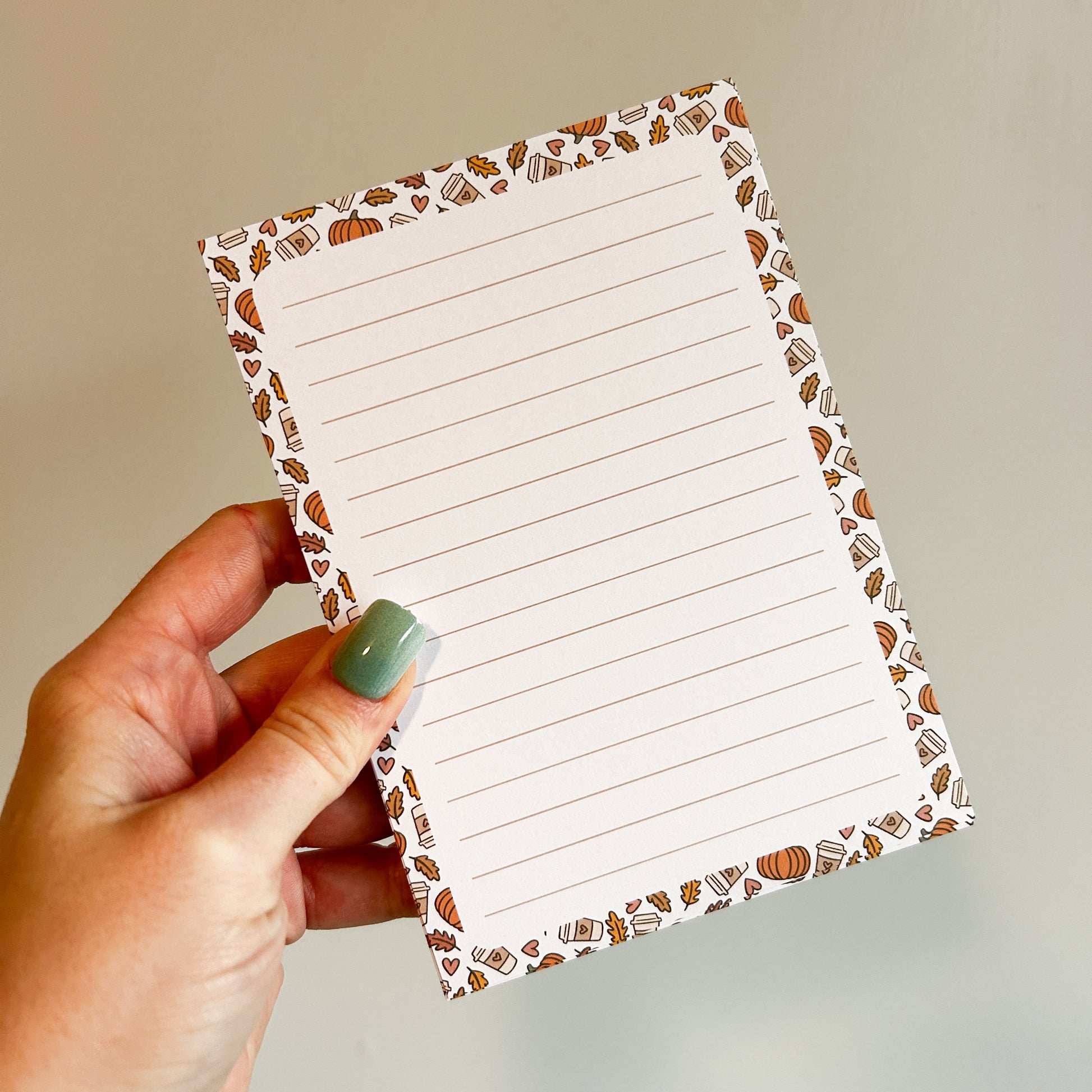 Meet your new autumn essential. Falling into Plans notepad. Designed to bring calm and clarity to your busy days, this handy A6 pad is perfect for jotting down to-do lists, notes, and little moments of inspiration.